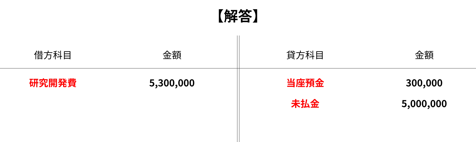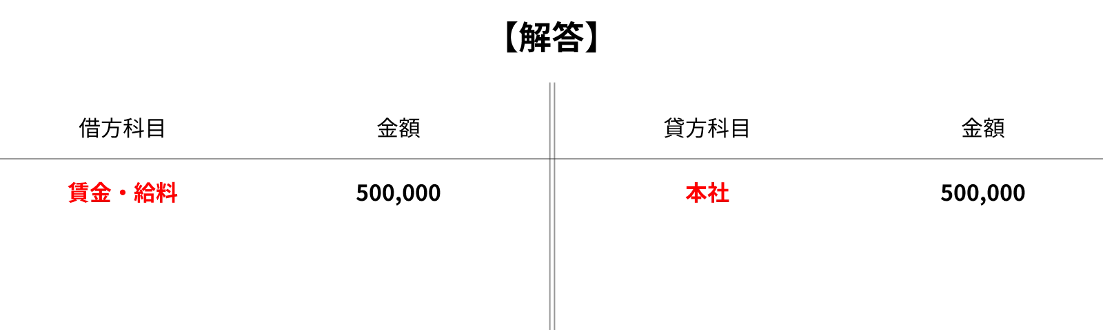 各勘定科目の使用は借方・貸方でそれぞれ1回ずつで入力してください。